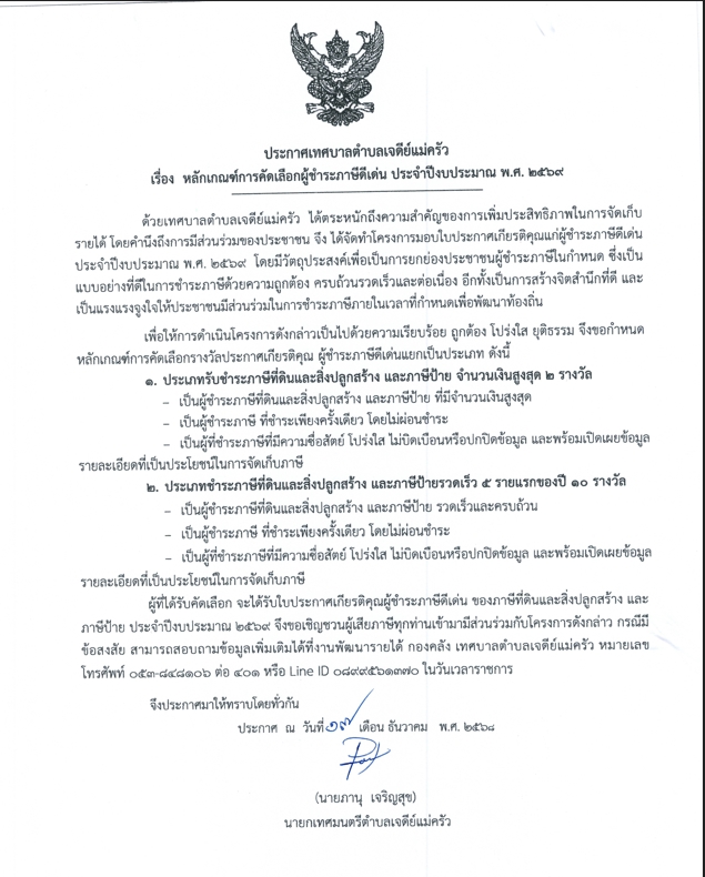 ศูนย์ช่วยเหลือประชาชนของเทศบาลตำบลเจดีย์แม่ครัว