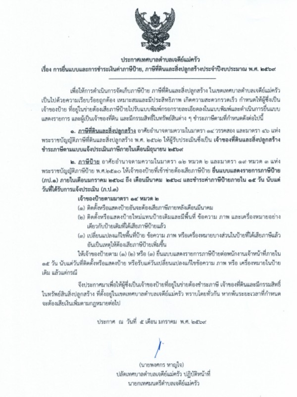 ศูนย์ช่วยเหลือประชาชนของเทศบาลตำบลเจดีย์แม่ครัว