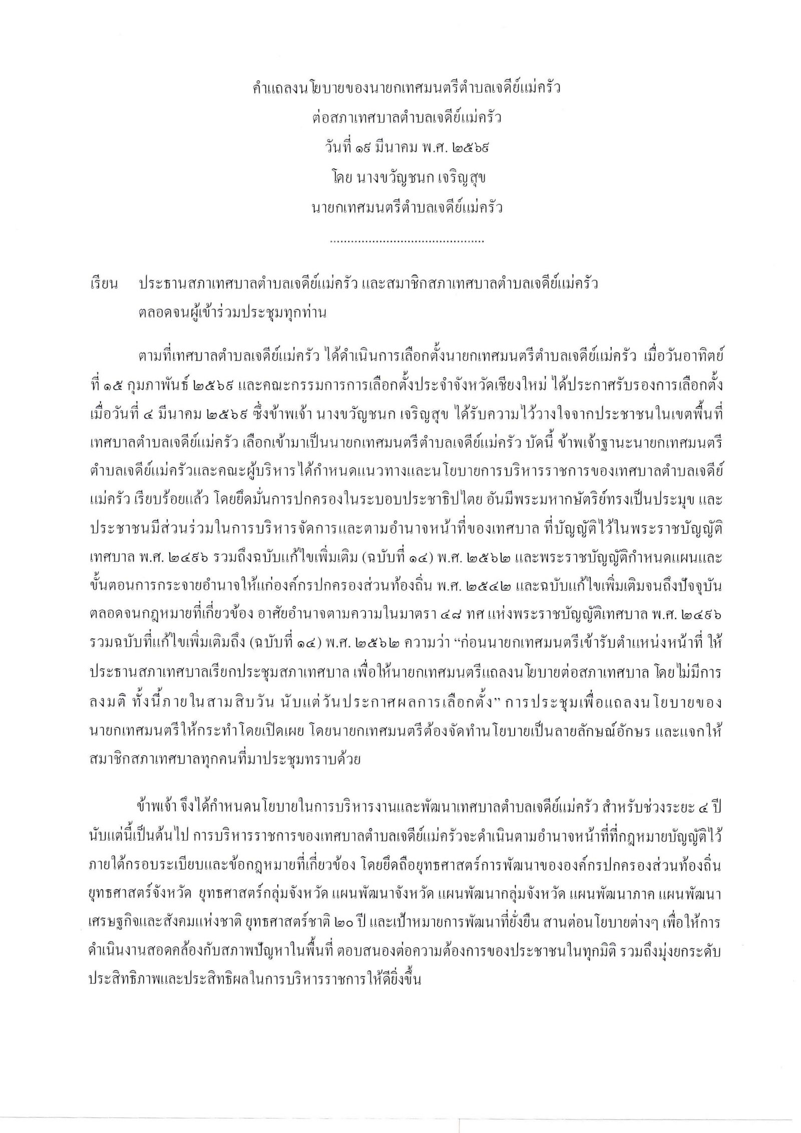 ศูนย์ช่วยเหลือประชาชนของเทศบาลตำบลเจดีย์แม่ครัว